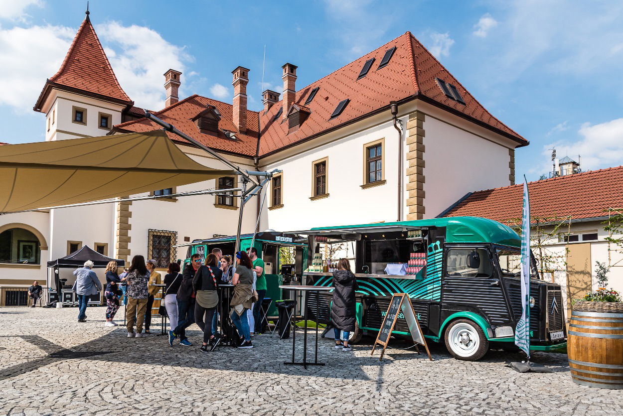Okrem 16-tich druhov vzoriek vína sme pre vás pripravili aj skvelé občerstvenie. Na nádvorí kaštieľa bude pre vás počas celého podujatia k dispozícii ponuka teplých streetfood jedál z našich štýlových HEY YOU autíčok – Citroenov HY zo 60 rokov. Tešiť sa môžete na pečenú klobásku, zemiakové rosty, lokálne „scískanice“ či tradičnú kapustnicu. Samozrejme nebudú chýbať ani pagáčiky a štrúdľa. Ďalšie autíčko WINECAR sa postará o servis nápojov – kávy, nealka, alebo vína.