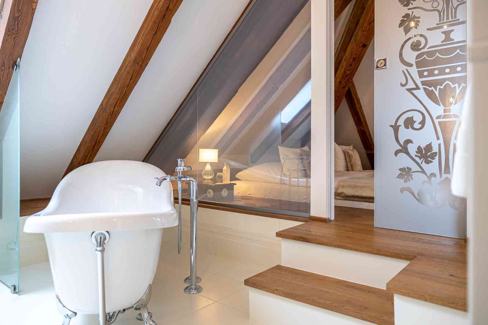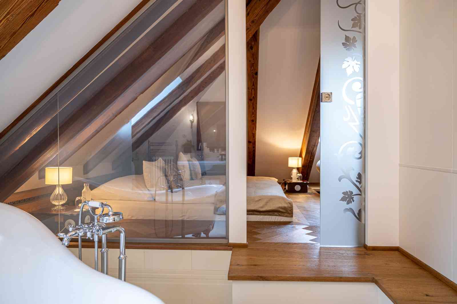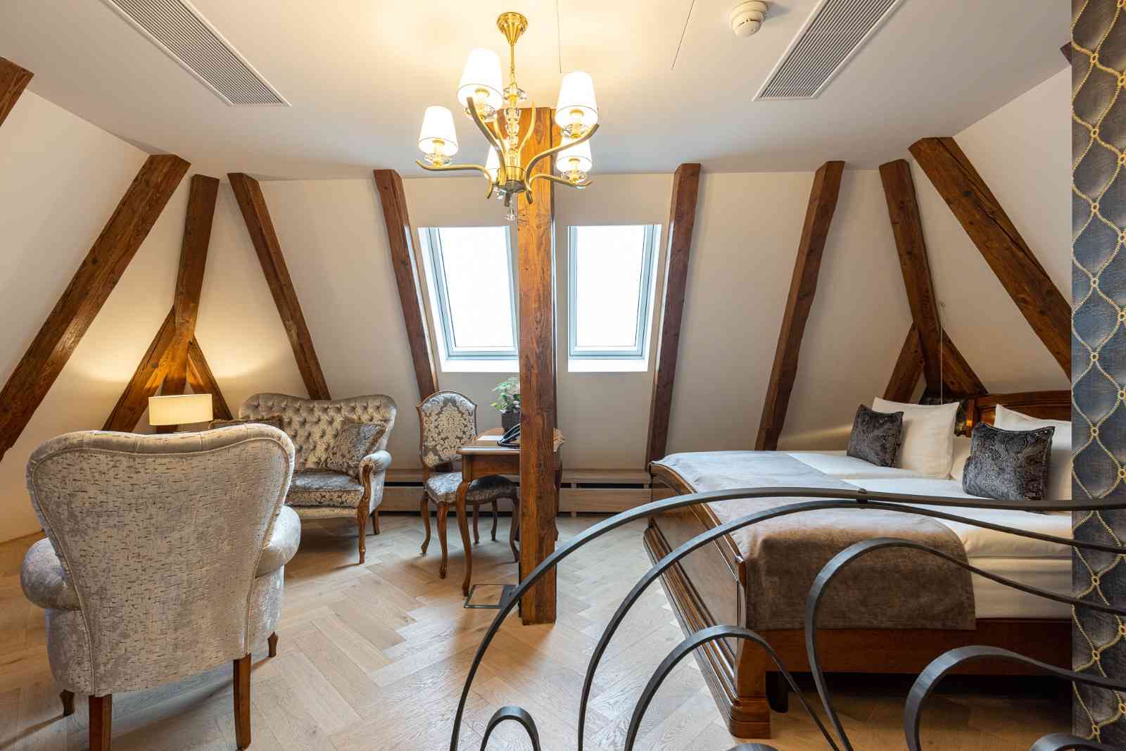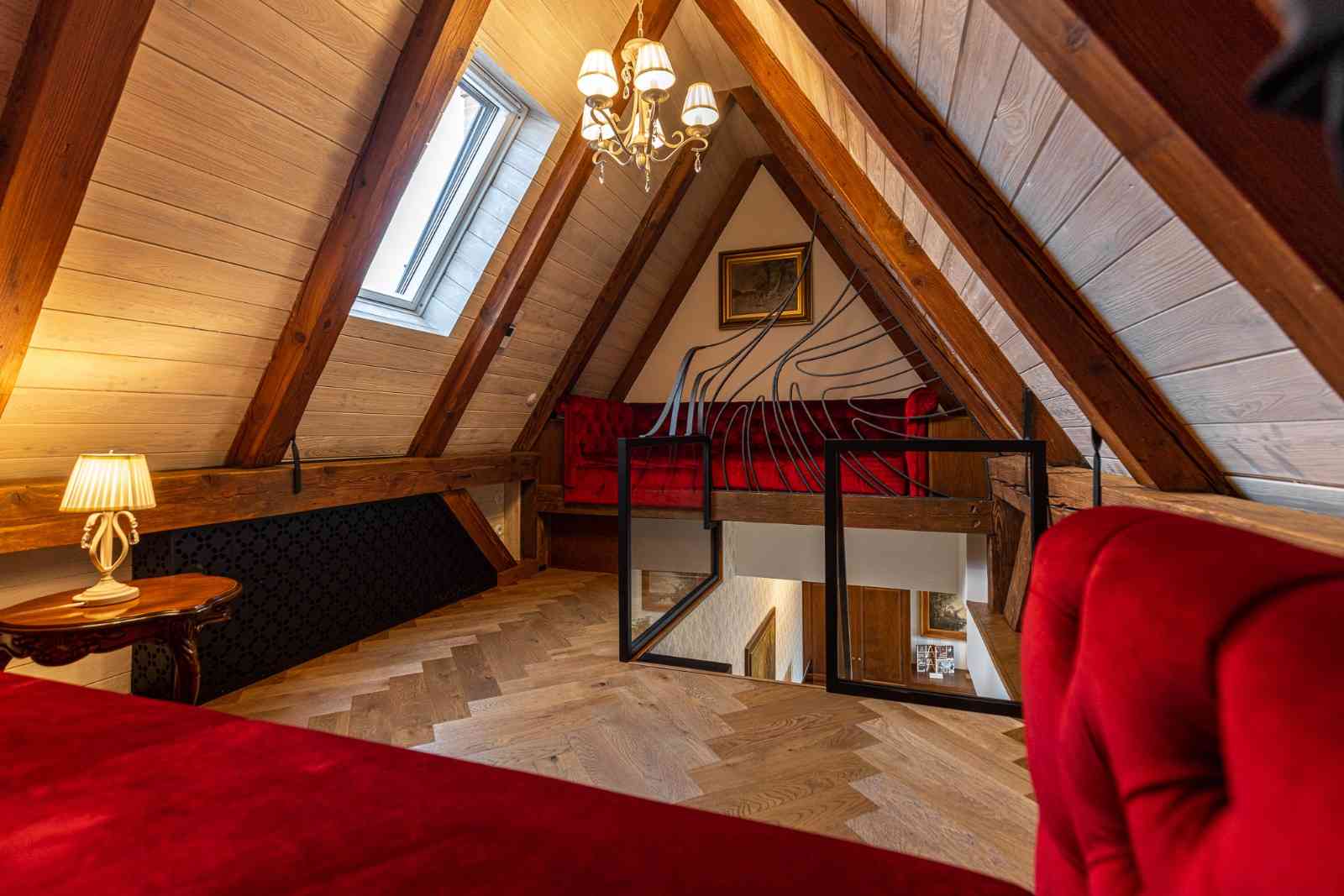 If you are seeking romance for two and wish to experience the love story of Katarína Pálffy and Štefan Ilešházi in the beautiful period-inspired Katarína Pálffy apartment, you have come to the right place. Our romantic, luxury apartment with a view of the Svätý Jur church is located in the attic section of Pálffy Manor.