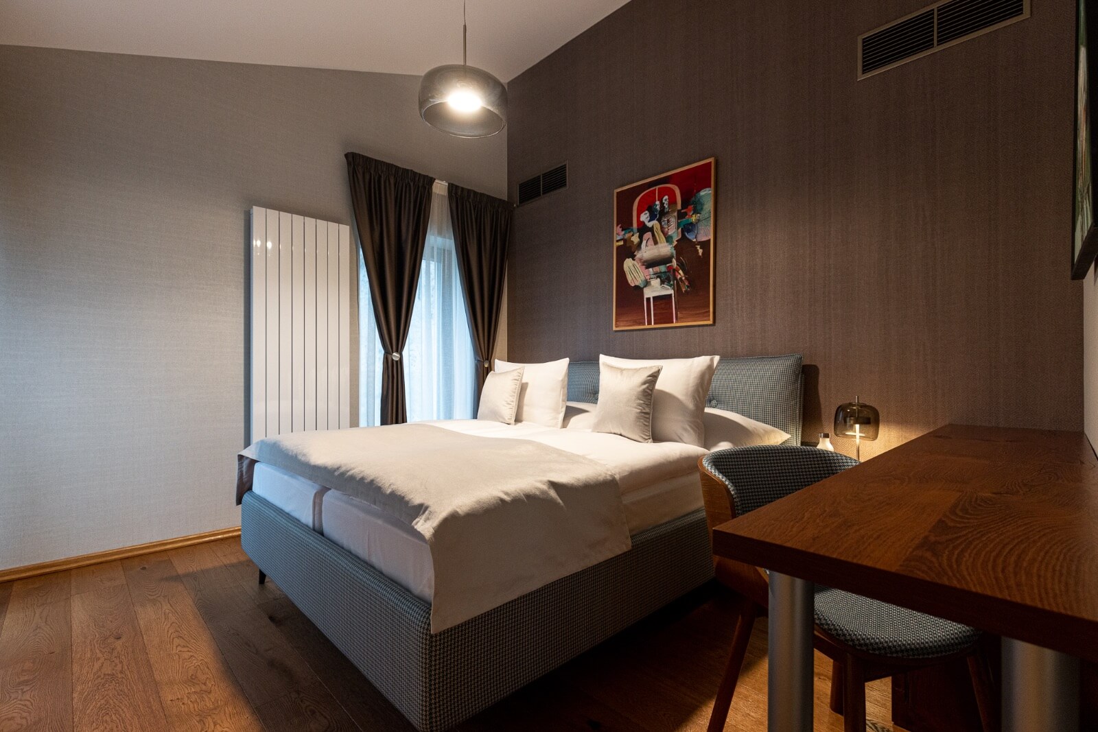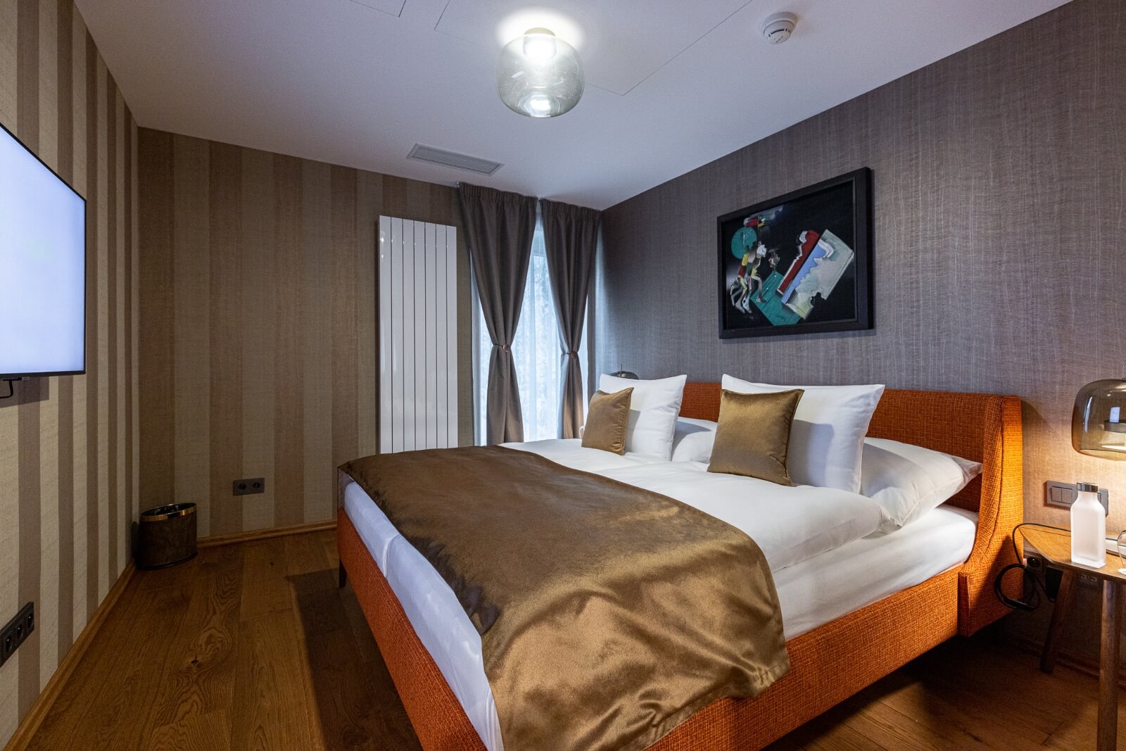 The Imperial Apartment at Pálffy Manor is our newest modern two-bedroom apartment, located directly above the Pálffy Brauerei brewery. It offers two separate rooms with double beds and the possibility of an extra bed in the living area. The courtyard view lends the apartment an unforgettable atmosphere.