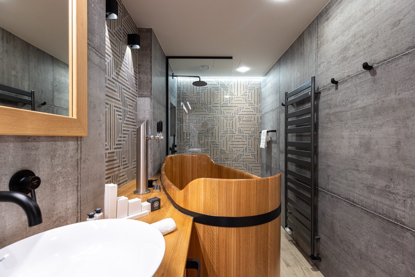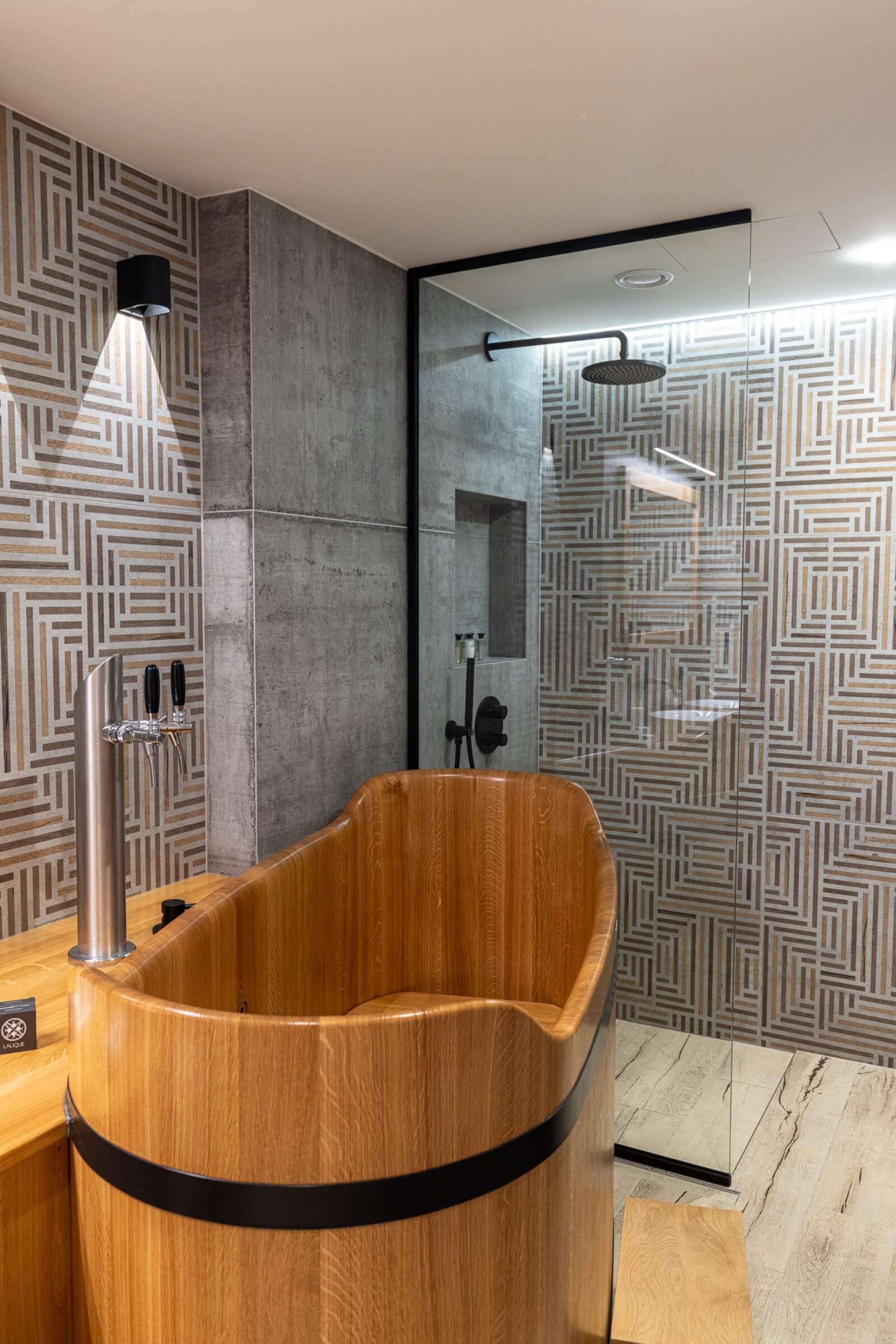 The centerpiece of this apartment is the beer bath, which you can order at any time during your stay and enjoy together with one of our excellent Pálffy Brauerei craft beers directly from the tap in your apartment.