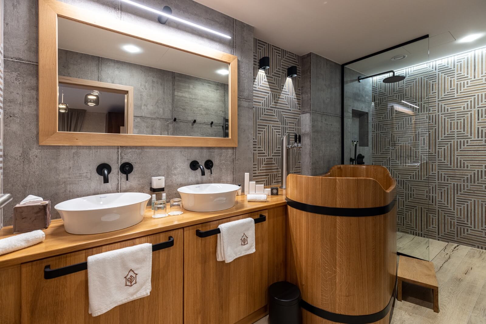 The apartment is dedicated to Ján Krušič, the second owner of Pálffy Manor. You will be enchanted by its silver interior with wooden elements, miller’s stairs, comfortable lounge seating, and a beautiful King Size bed with quality bed linens, or relax in the separate luxury bathroom with a shower.