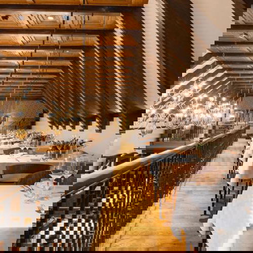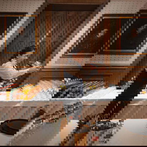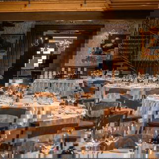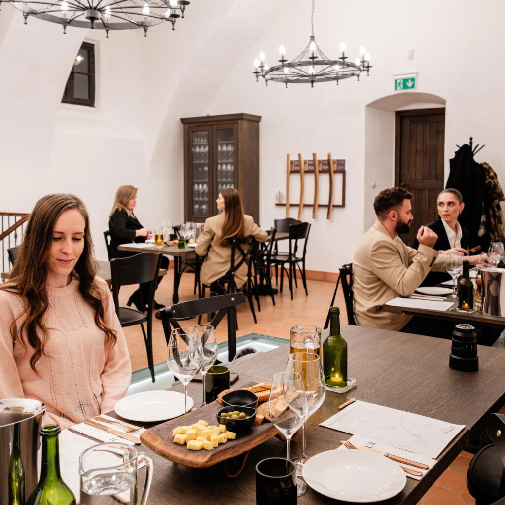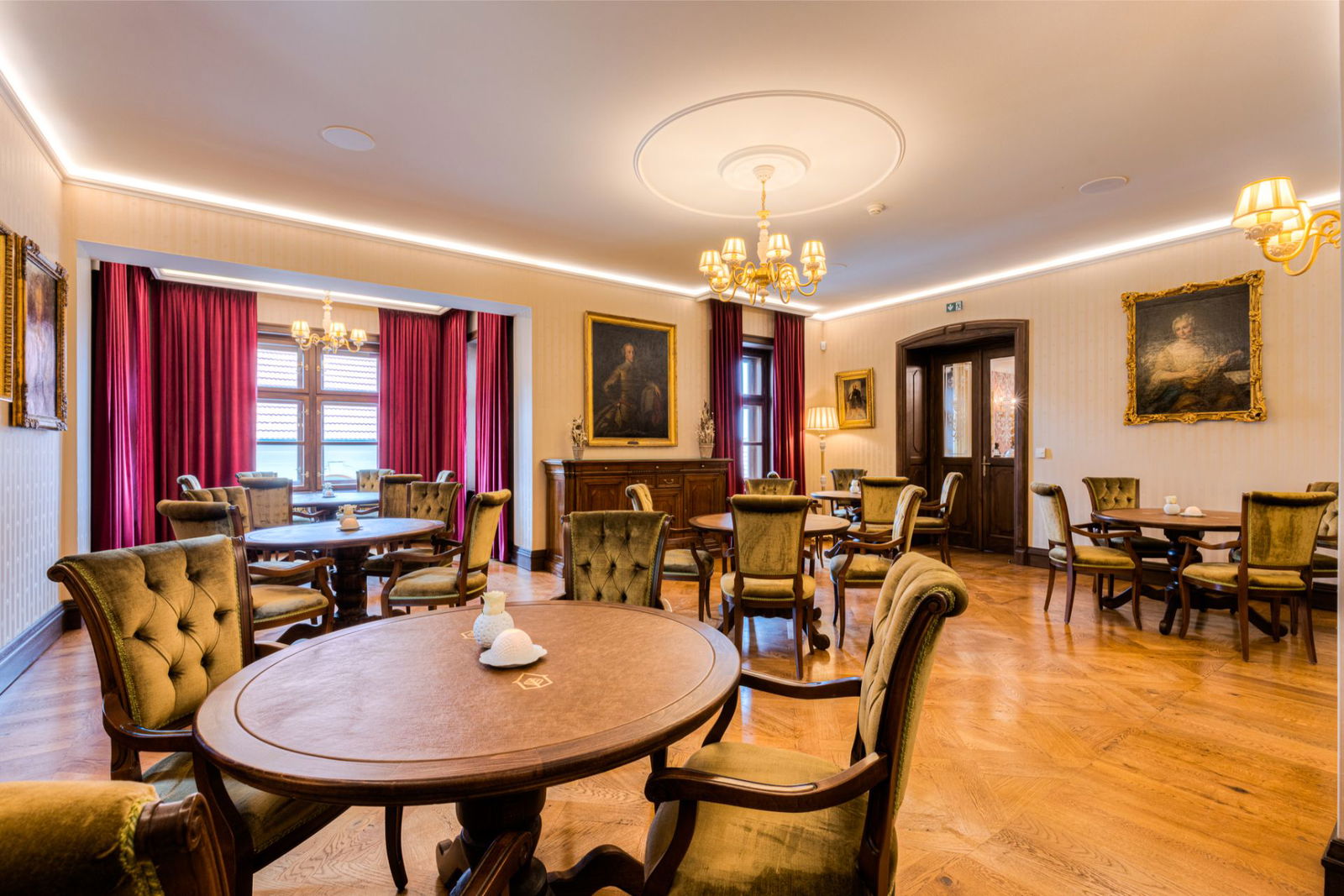 Interiér fine dining reštaurácie je rozdelený na bordový a zlatý salónik, ktoré spájajú historickú eleganciu s príjemnou útulnosťou. Priestory sú vhodné na obchodné meetingy, dôležité stretnutia či firemné akcie v komornejšom duchu.