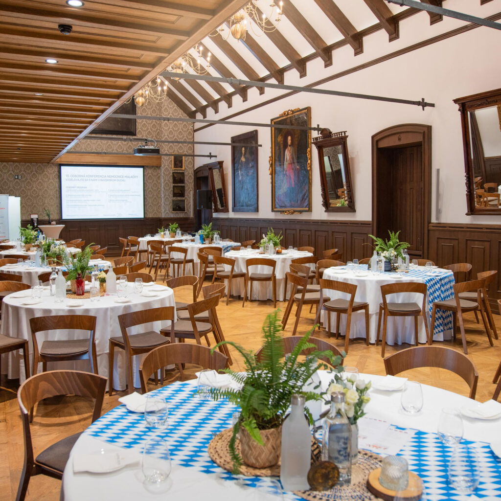 Malá konferenčná sála ponúka komornejšie prostredie ideálne pre menšie firemné stretnutia, školenia alebo workshopy. Možnosť prepojenia s Veľkou sálou a pavlačou rozširuje jej využitie podľa vašich aktuálnych potrieb.