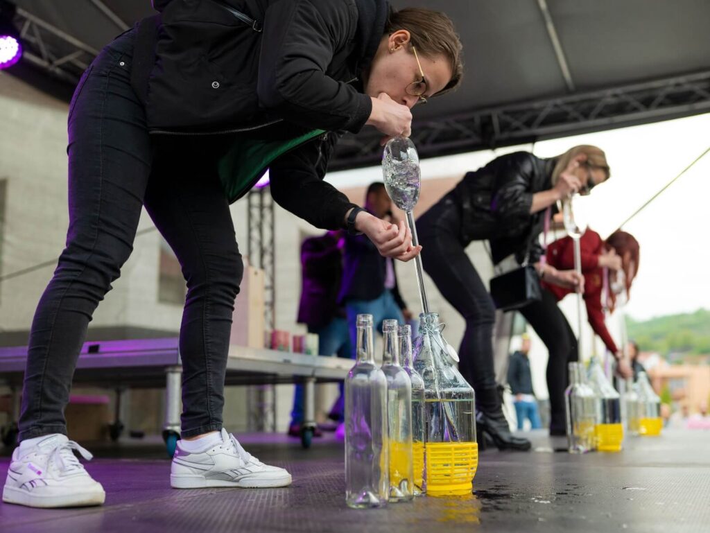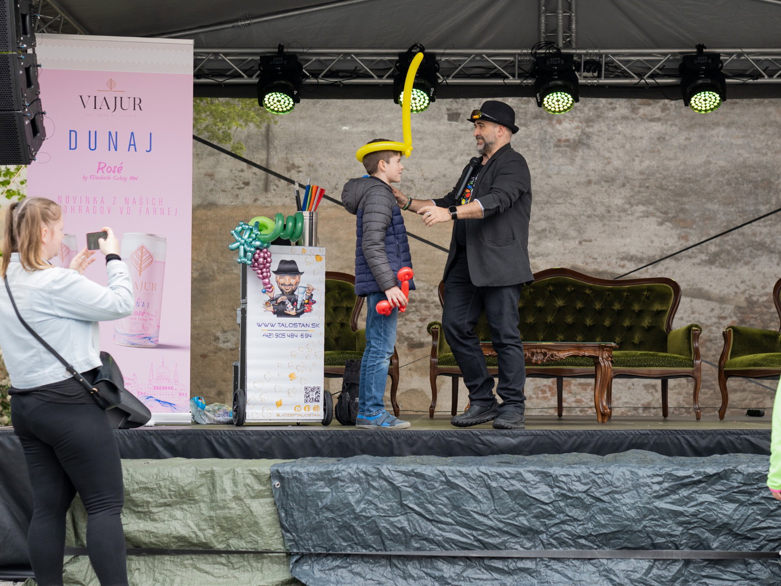 Kým sa v pivniciach ochutnávalo, na nádvorí pre deti kúzlil Talostan a dospelí si odskúšali svoje vinárske zručnosti pri váľaní súdov, ťahanie vína heverom a sabráž sektu šabľou.