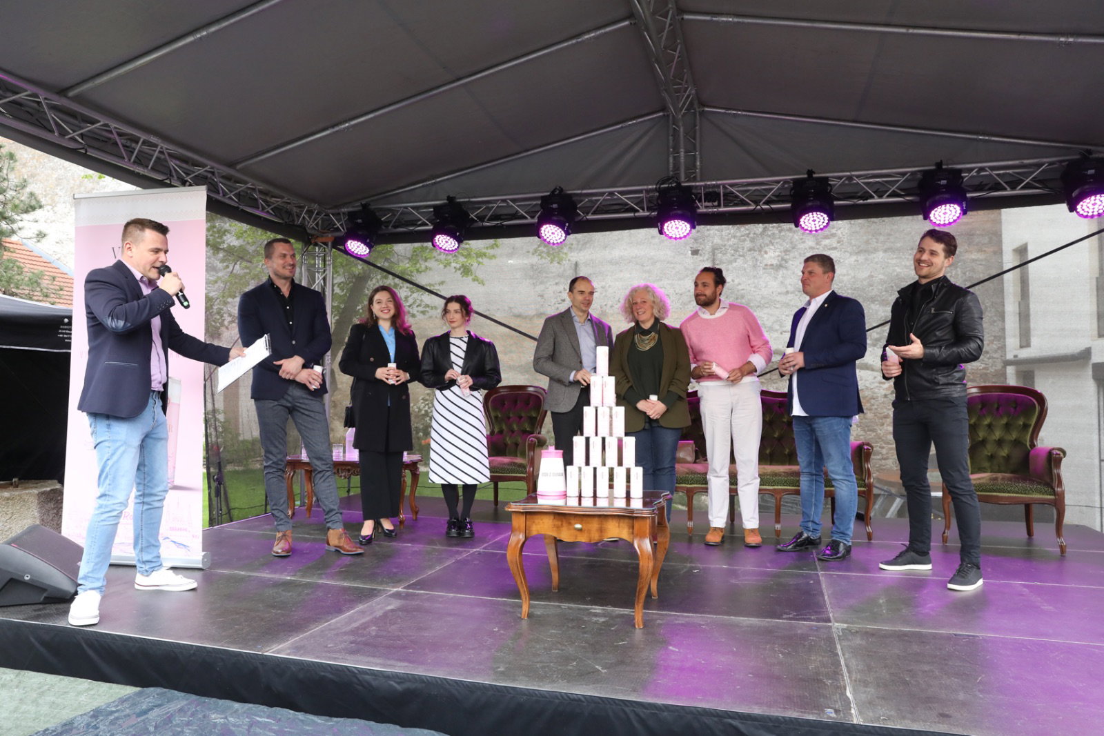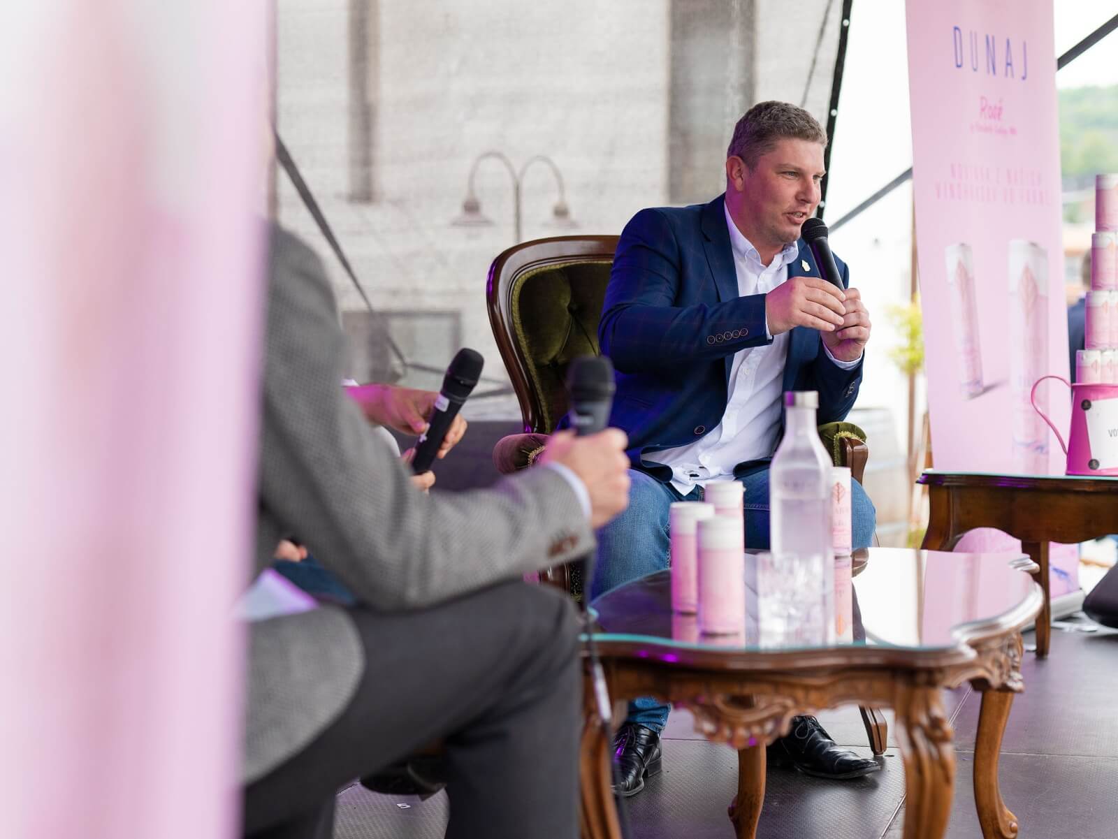 Vrcholom dňa bol krst ružového vína, ktoré predstavila spolu s výrobným riaditeľom vinárstva Tomášom Dilongom vzácna hostka Elizabeth Gabay, Master of Wine. Sme hrdí, že svetová odborníčka na rosé je spoluautorka nášho unikátneho vína. Zaujímavé je nielen svojou farbou, vôňou a chuťou, ale aj balením – je plnené do obľúbených a ekologických „take away“ plechoviek. Krstilo sa symbolicky vodou z Dunaja.