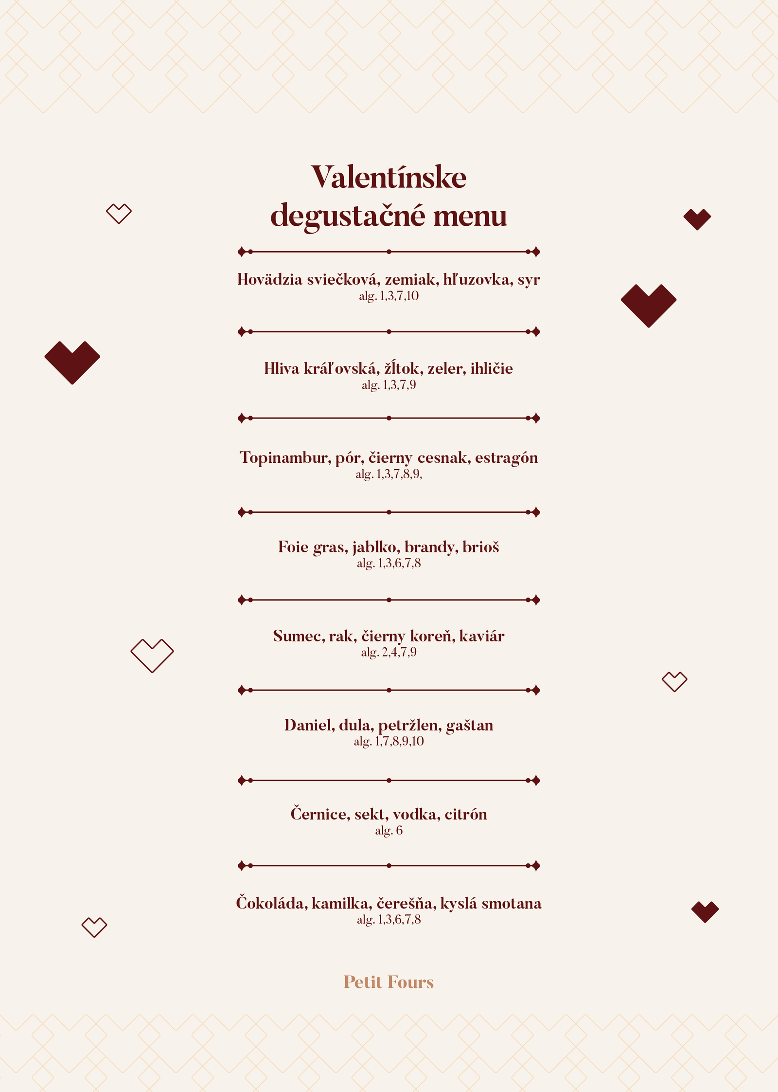 - Valentínsky degustačný večer (s alko/nealkoholickým párovaním) – 14. februára 2023 o 18:30 hod.