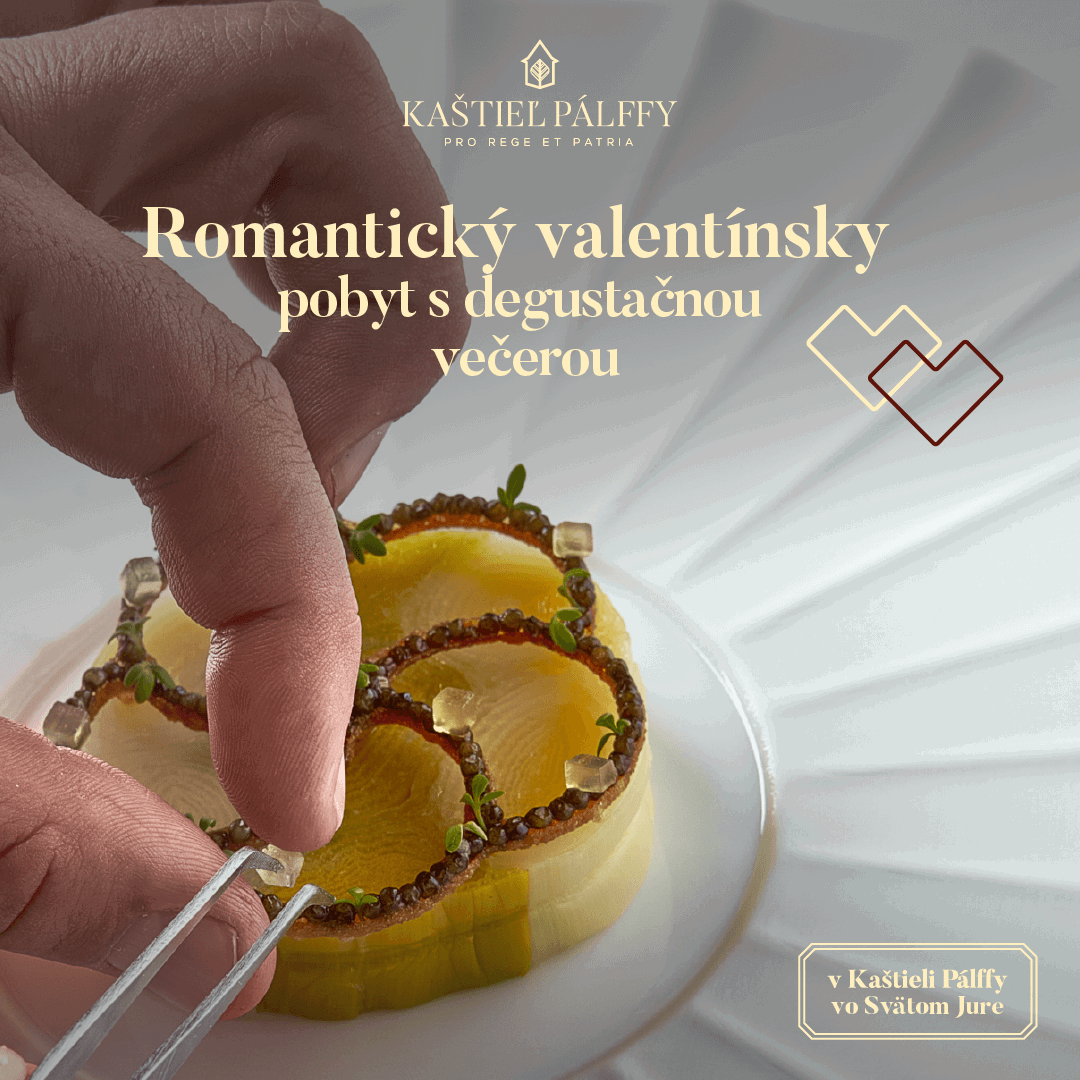 Máme pre vás tip na valentínsky darček, ktorý vás zaručene nadchne a zoberie vás do tej najvyššej kulinárskej dimenzie. Ohúrte svoje chuťové bunky a zažite výnimočnú explóziu netradičných kombinácií chutí v 8-chodovej zážitkovej degustačnej večeri. Vytvorte si nezabudnuteľné spomienky na unikátny gastronomický večer, ktorý sa uskutoční 14. februára o 18:30 hod. vo výnimočných priestoroch Kaštieľa Pálffy v Salóniku Habsburgovcov.